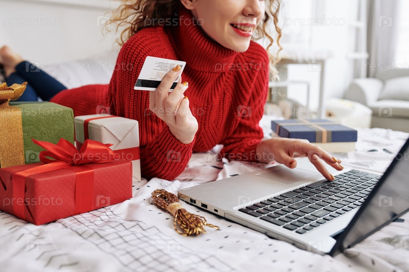 Женщина заказывает рождественские подарки