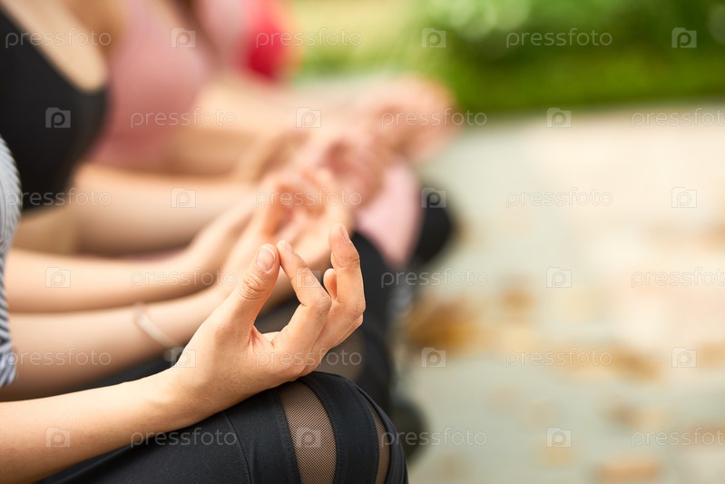 Женщины-спортсменки, занимающиеся сельскохозяйственными видами спорта и медитирующие на свежем воздухе