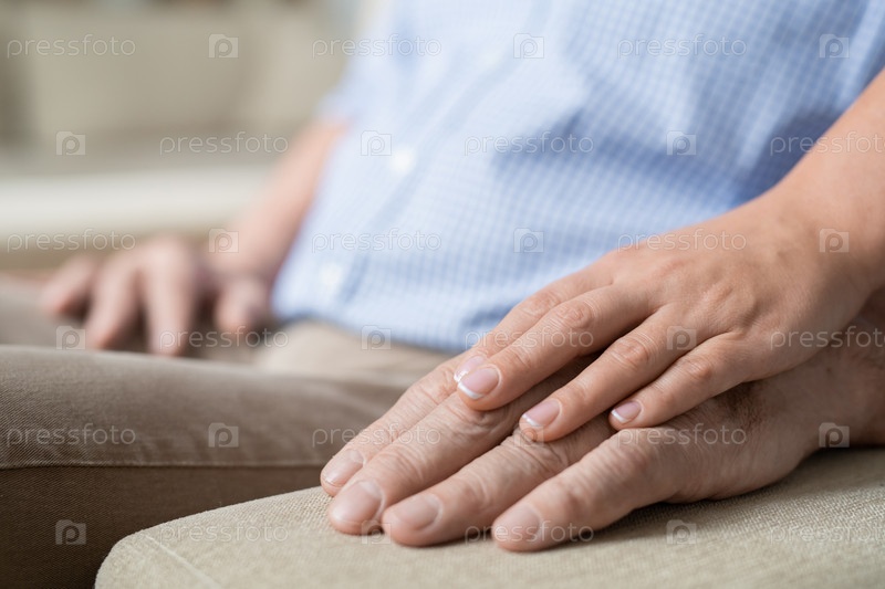 Рука молодой ласковой и осторожной женщины на руке ее старшего отца