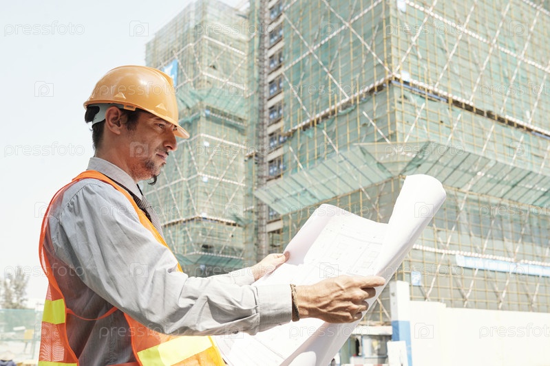 Инженер, изучающий чертеж