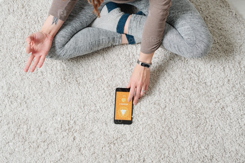 Скрещенные ноги и руки современной активной девушки, выполняющей упражнения по йоге