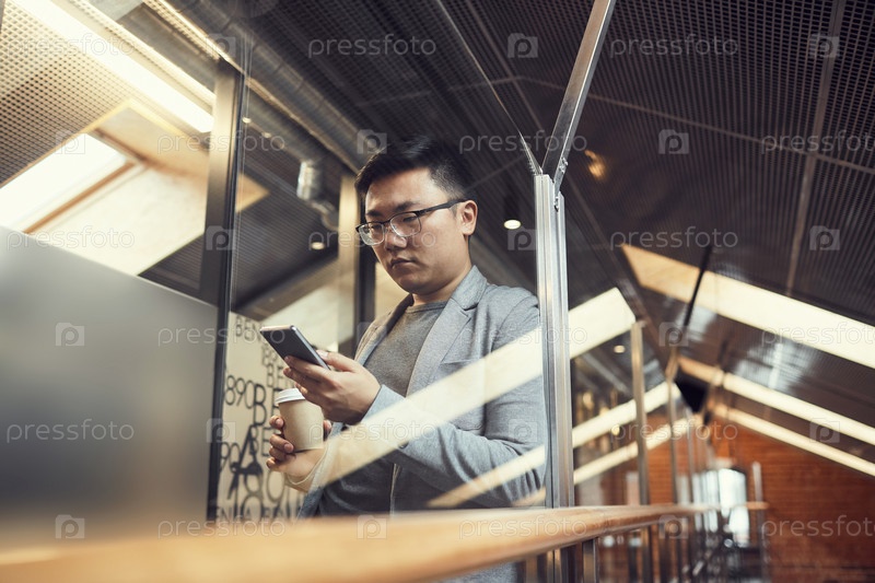 Азиатский бизнесмен, использующий смартфон в офисе