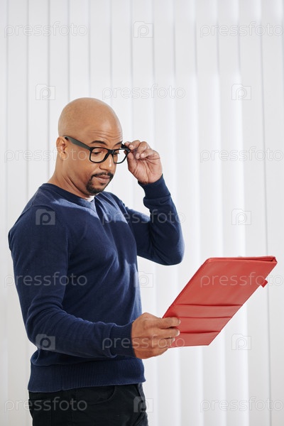 Предприниматель читает финансовый отчет