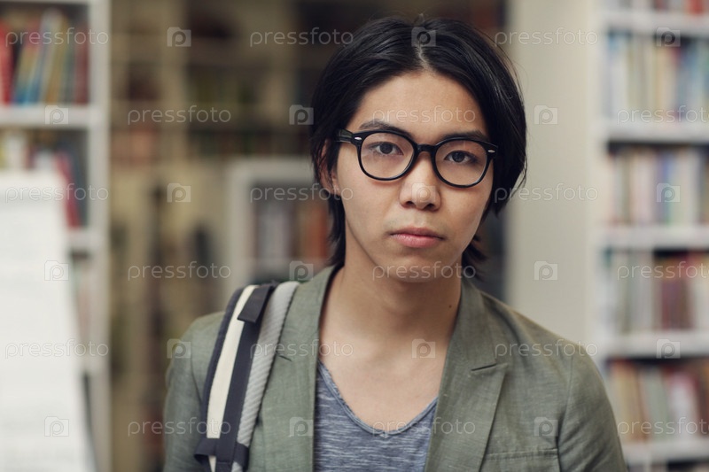Азиатский студент в библиотеке