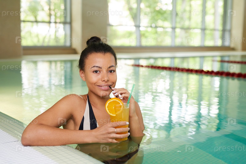 Женщина, наслаждающаяся бассейном в курорте