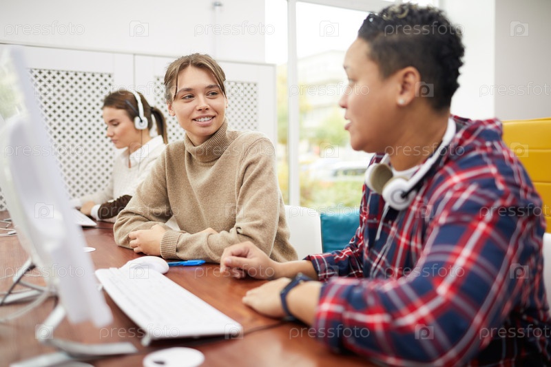 Молодые женщины, работающие над групповым проектом в библиотеке