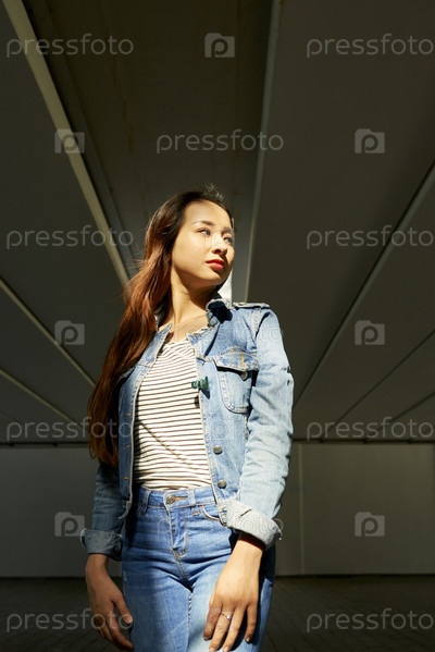 Красивая женщина в джинсовой одежде