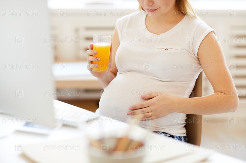 Беременная женщина пьет сок
