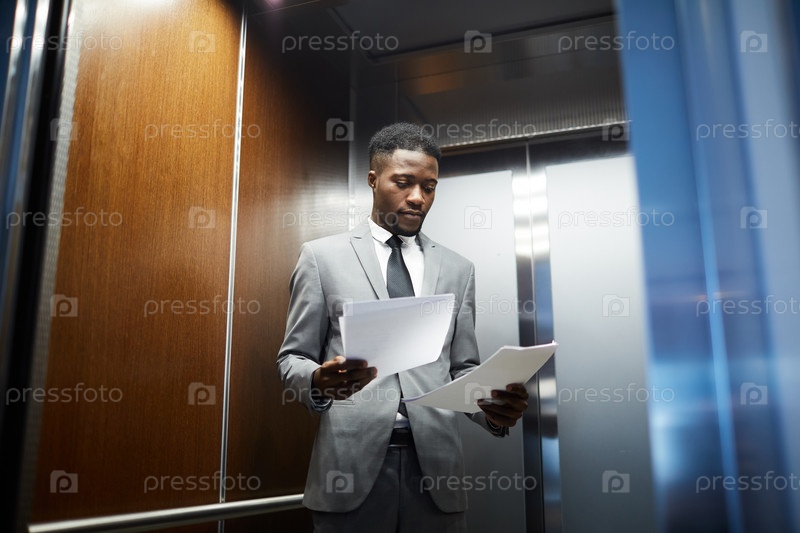 Бизнесмен с документами в лифте