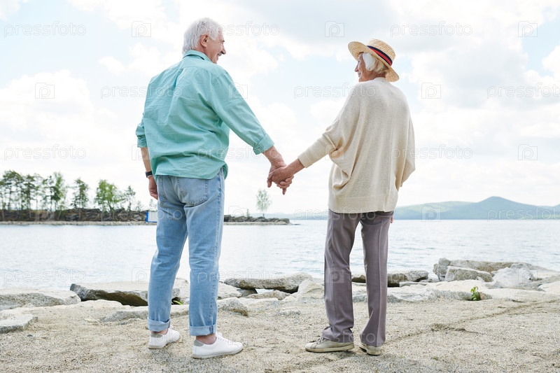 Пожилые люди у озера