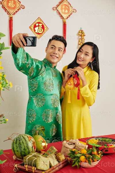 Пара фотографирует на Тет