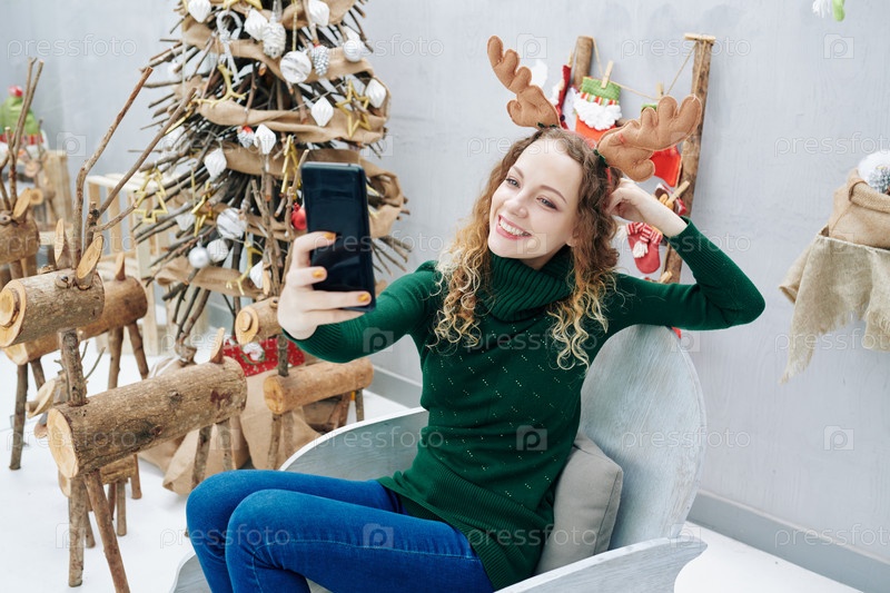 Красивая женщина, делающая селфи