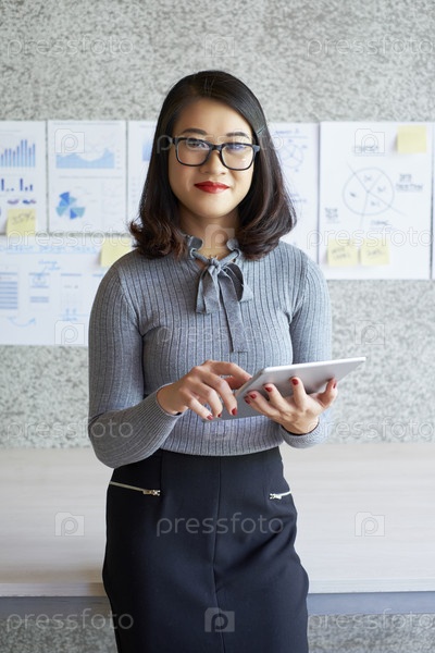 Деловая женщина с планшетным компьютером в офисе