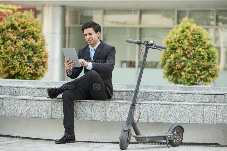 Бизнесмен, использующий планшетный компьютер в городе