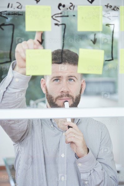 Бизнесмен, изучающий бизнес-графы
