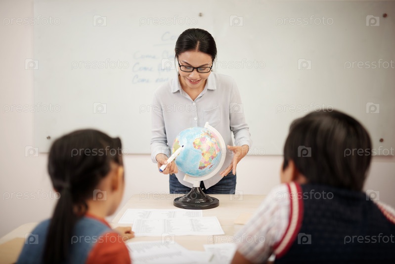 Учитель объясняет географию