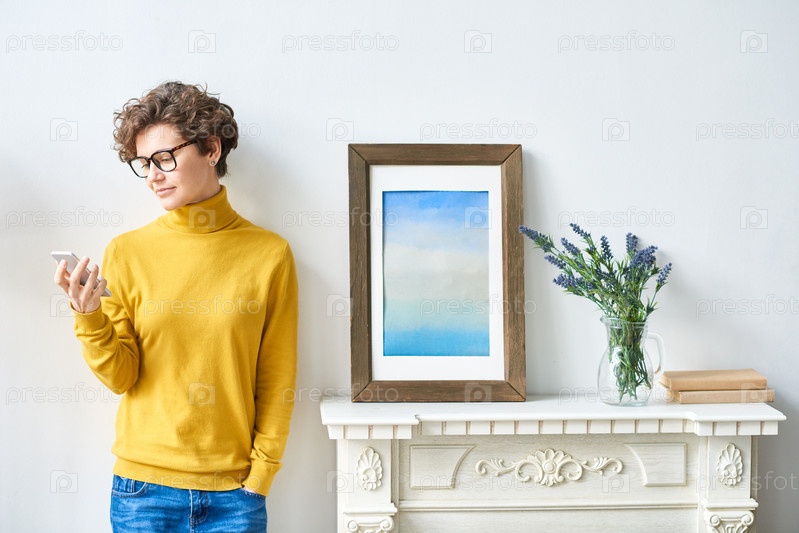 Женщина-хипстер проверяет сообщение на смартфоне