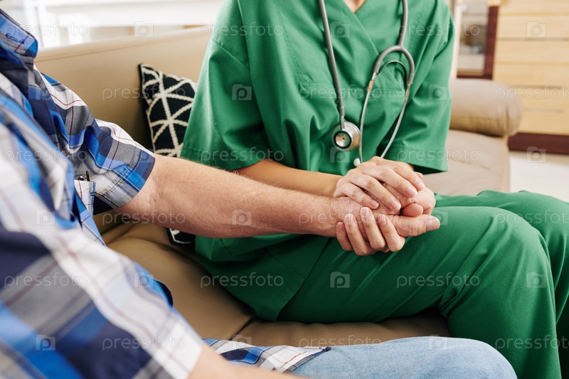 Медсестра, поддерживающая пожилого пациента
