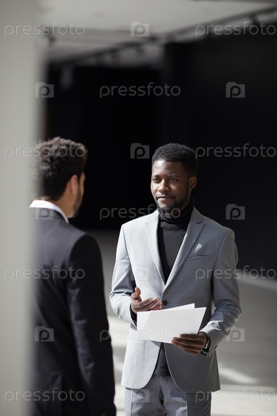 Чернокожий бизнесмен разговаривает с коллегой