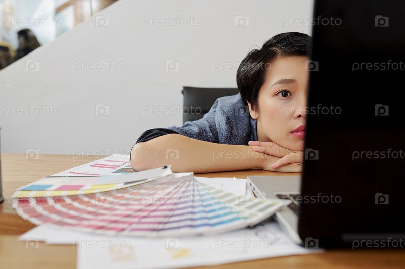 Уставшая деловая женщина, использующая ноутбук на работе