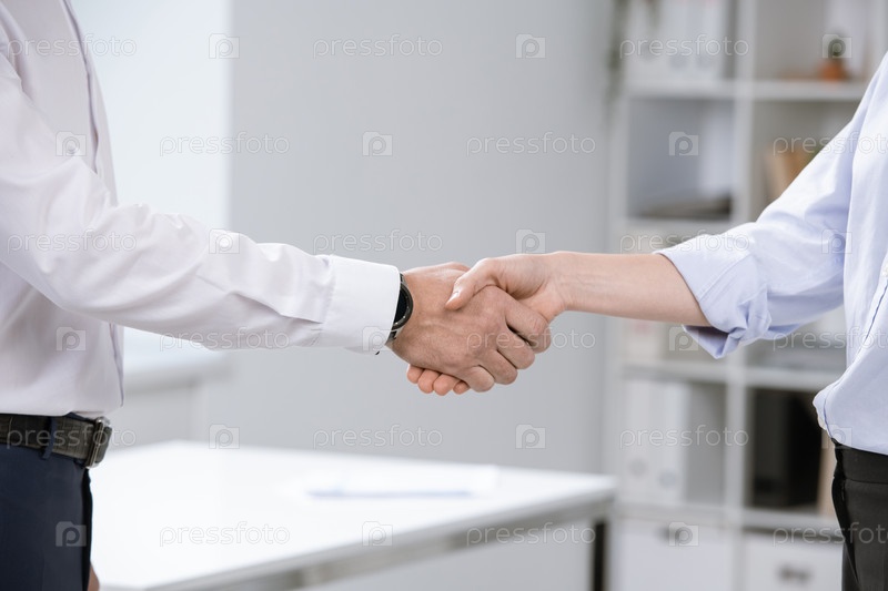 Бизнес-партнеры приветствуют друг друга рукопожатием после подписания нового контракта