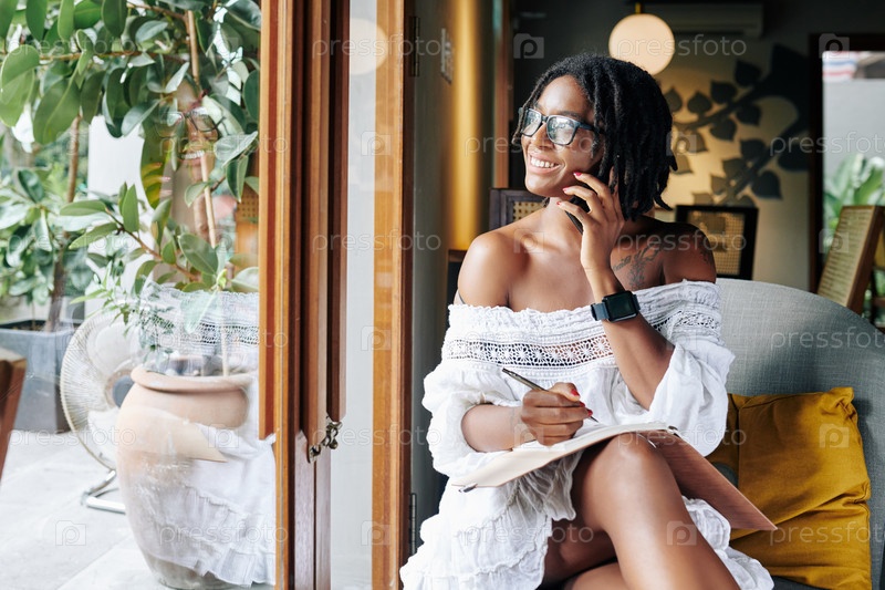 Женщина обсуждает сделки по телефону