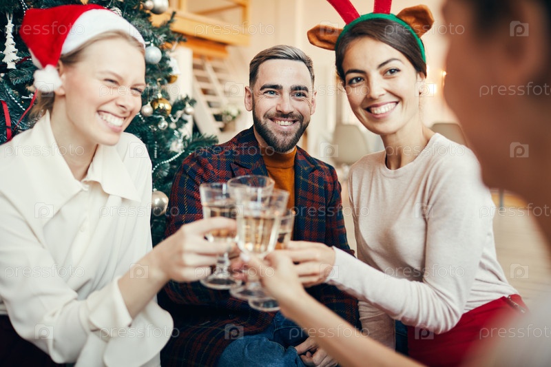 Друзья приносят тосты на рождественской вечеринке