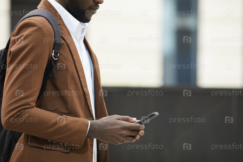 Африканский мужчина, использующий смартфон Modern Closeup