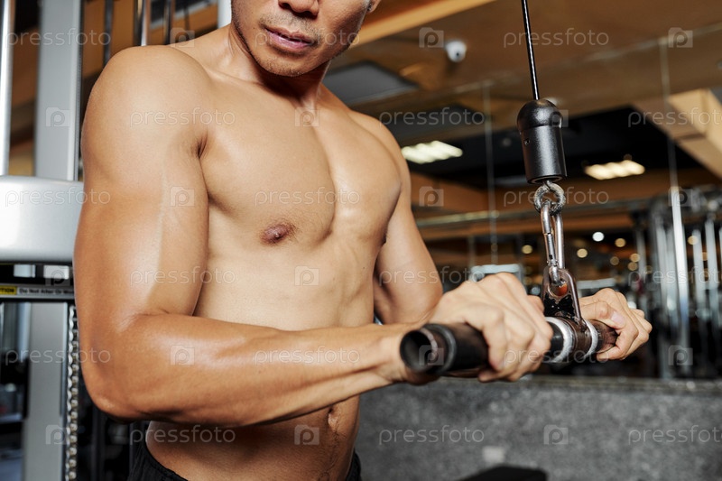 Мужчина, тренирующийся с помощью весов