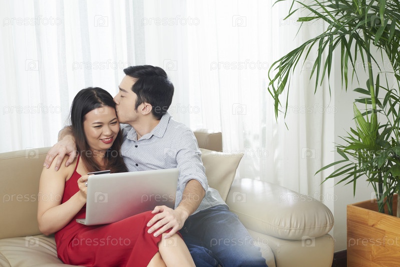 Влюбленная пара покупает онлайн