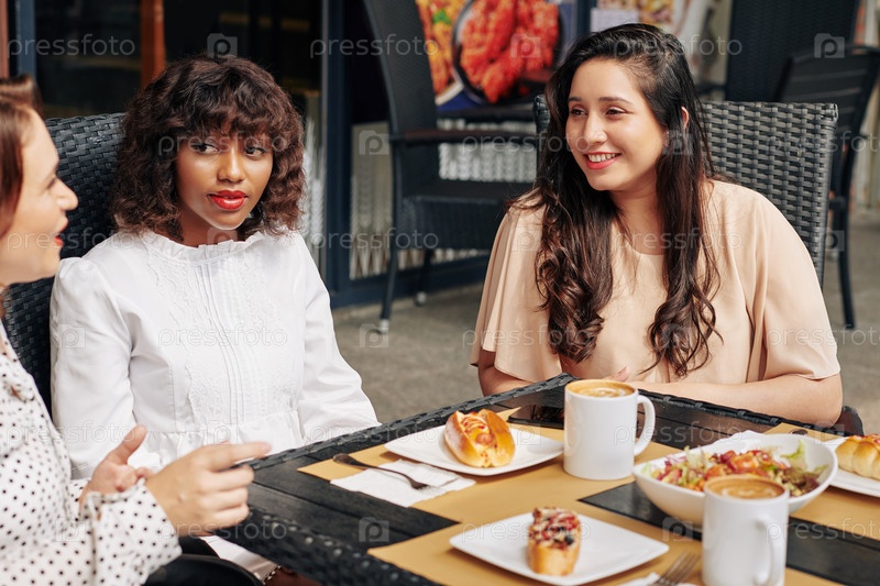 Друзья обедают в кафе