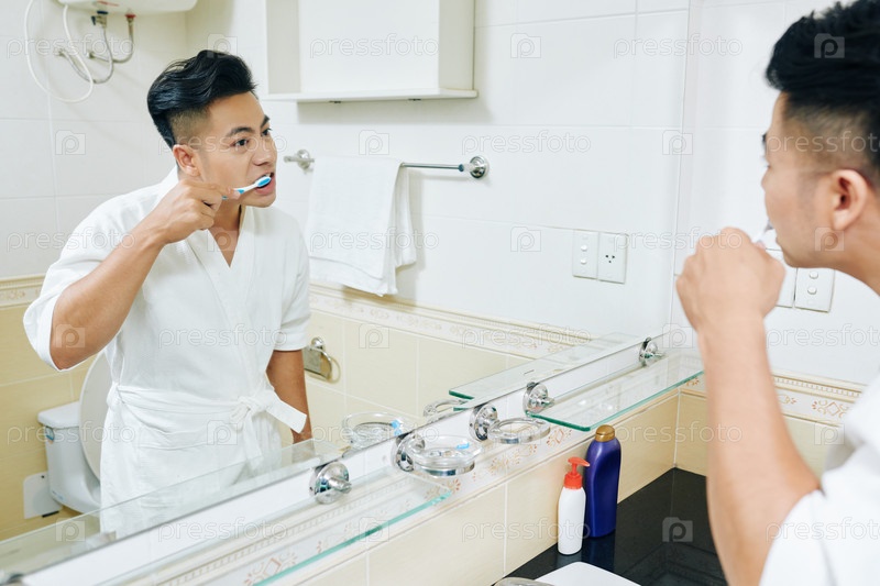 Молодой азиат чистит зубы