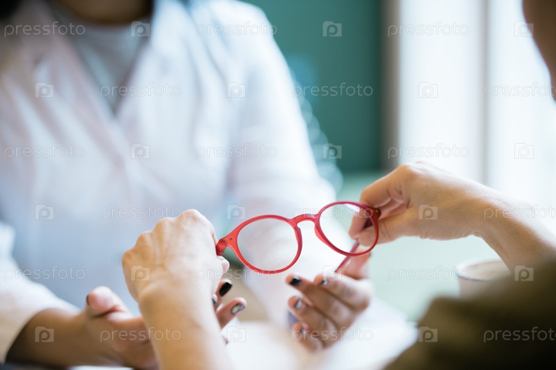 Руки молодой женщины, берущей новые очки у клинициста