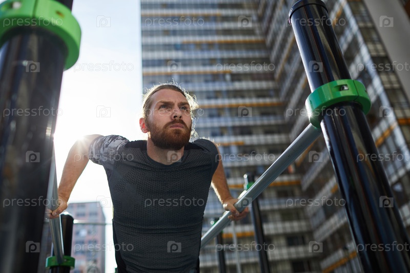 Сильный мужчина делает буквы