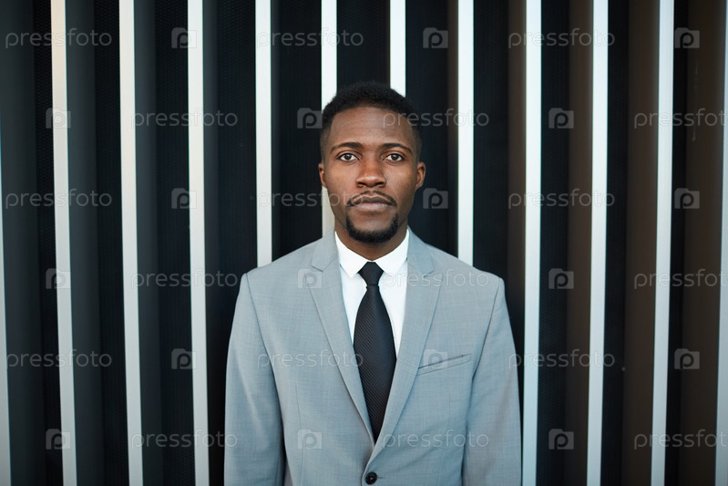 Черный бизнесмен смотрит на камеру