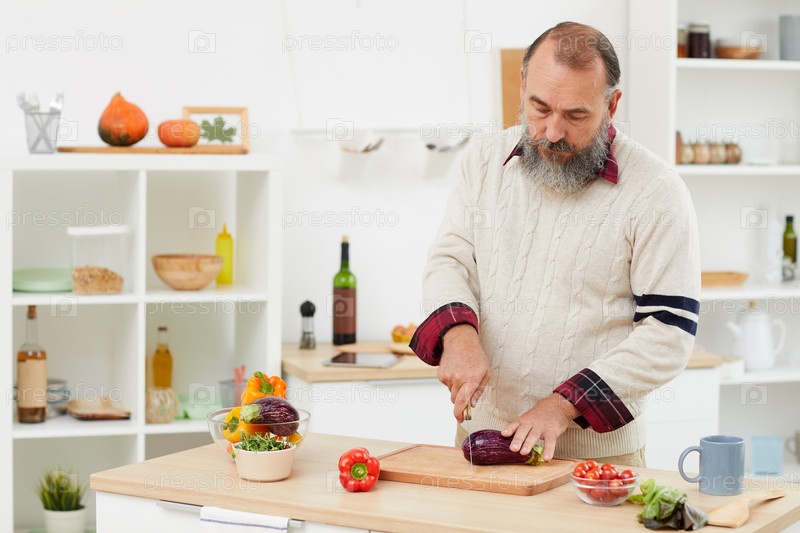 Старший мужчина готовит