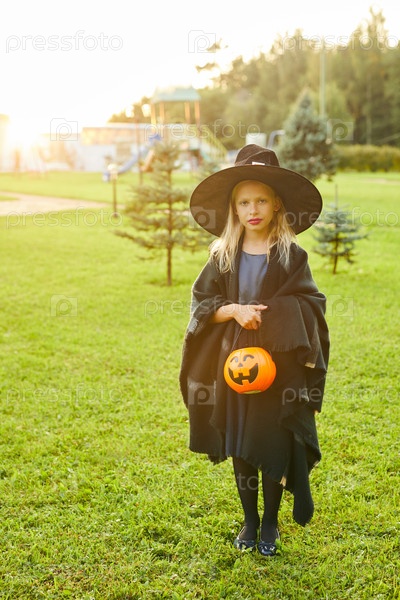 Cute Witch Holding Trick or Treat Bucket Красивый фокус или ведро с угощениями