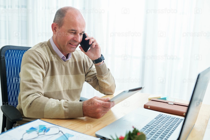 Позитивный предприниматель звонит по телефону