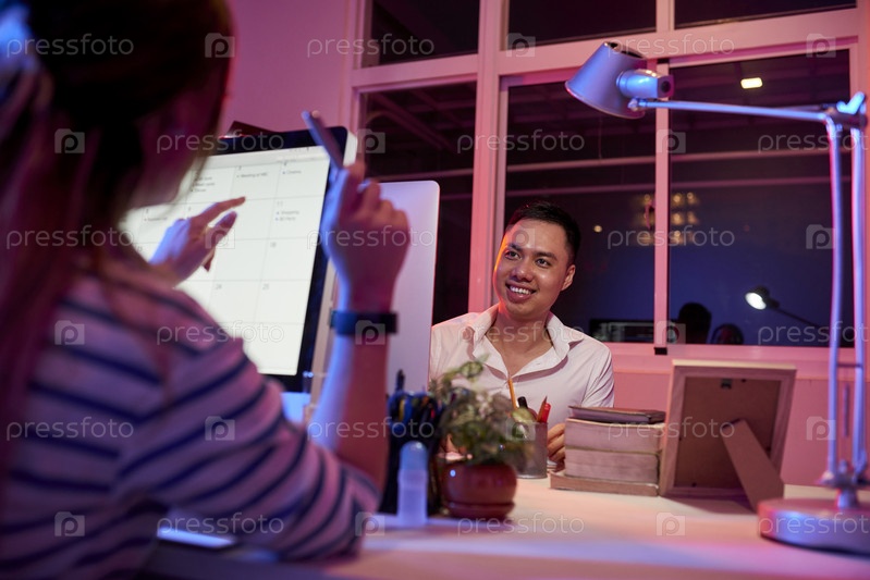 Бизнесмены разговаривают друг с другом во время работы