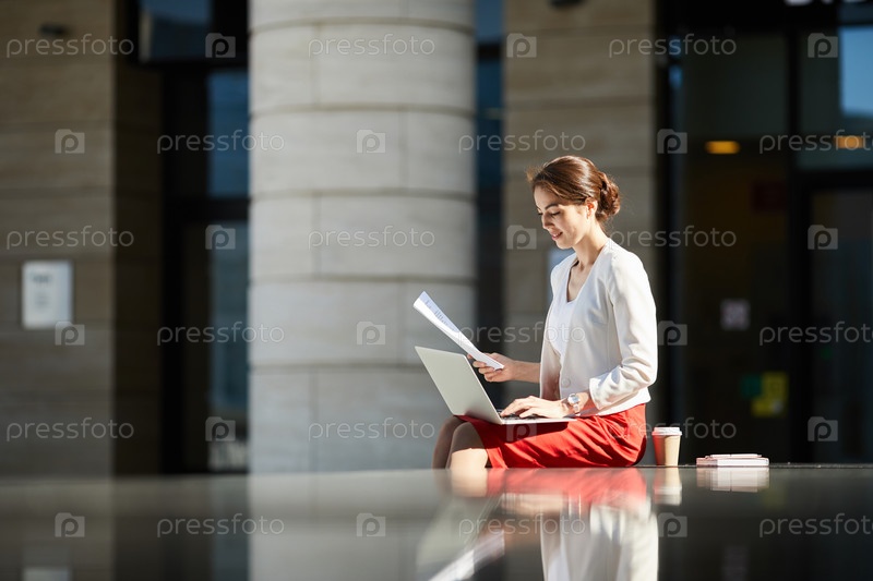 Деловая женщина, работающая в солнечном свете