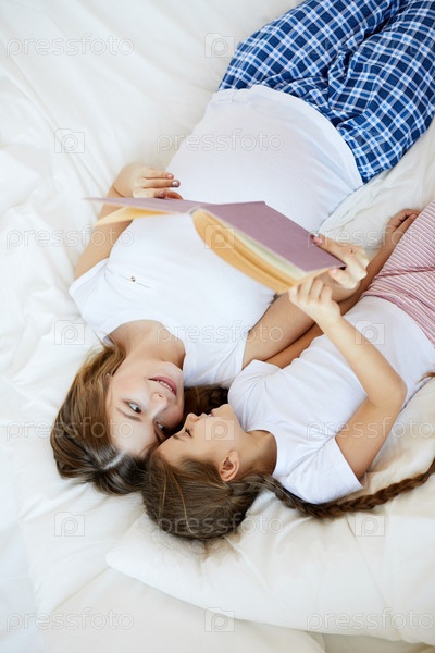 Мать и ребенок читают истории