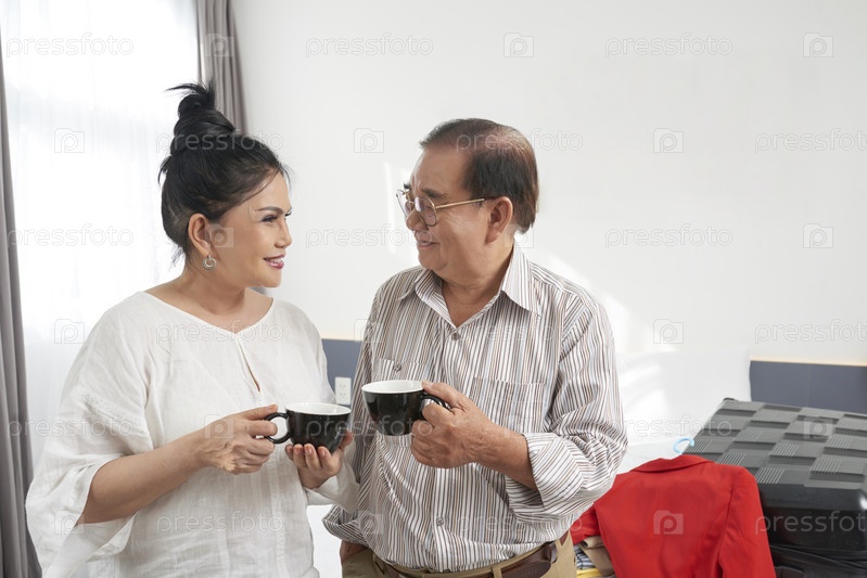 Старшая пара пьет кофе