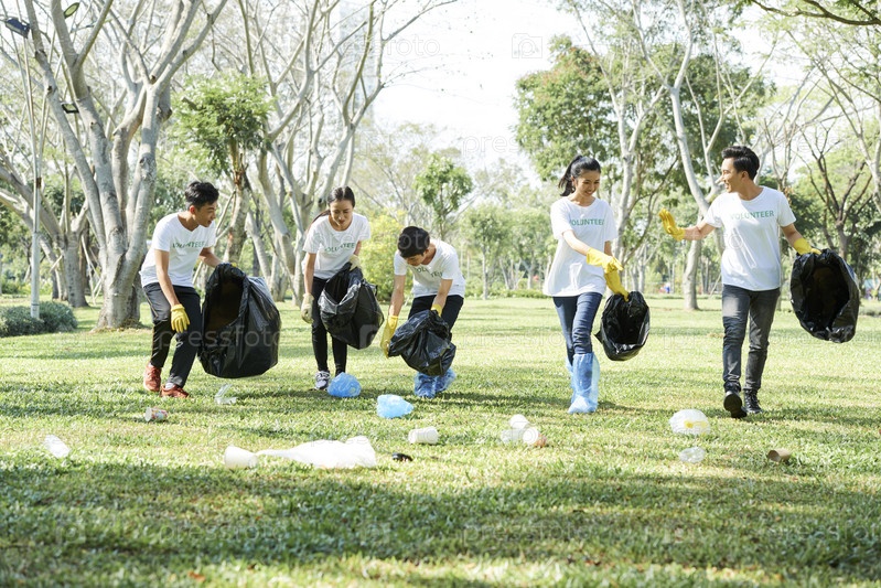 Волонтеры, работающие в парке