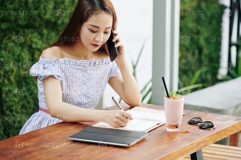 Красивая молодая женщина, разговаривающая по телефону