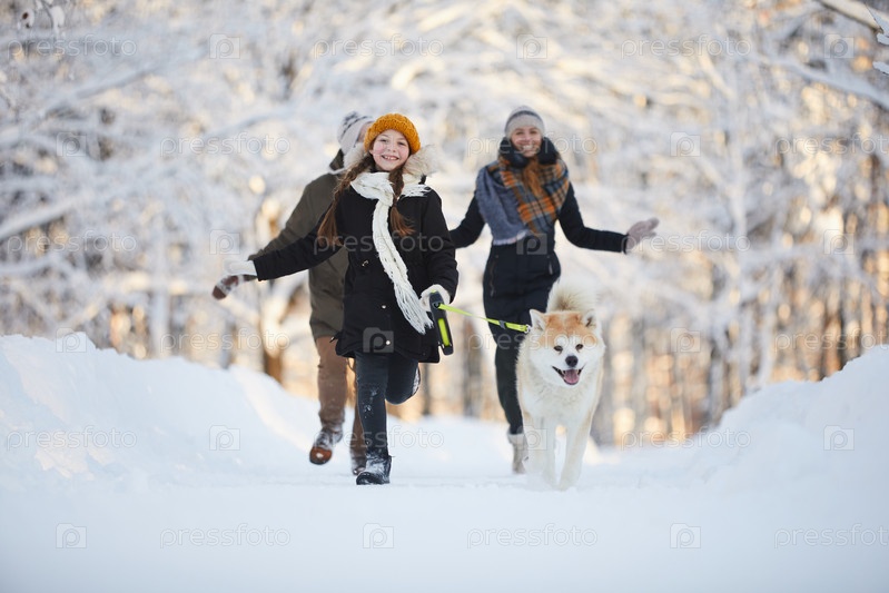 Девушка, гуляющая с собакой в парке