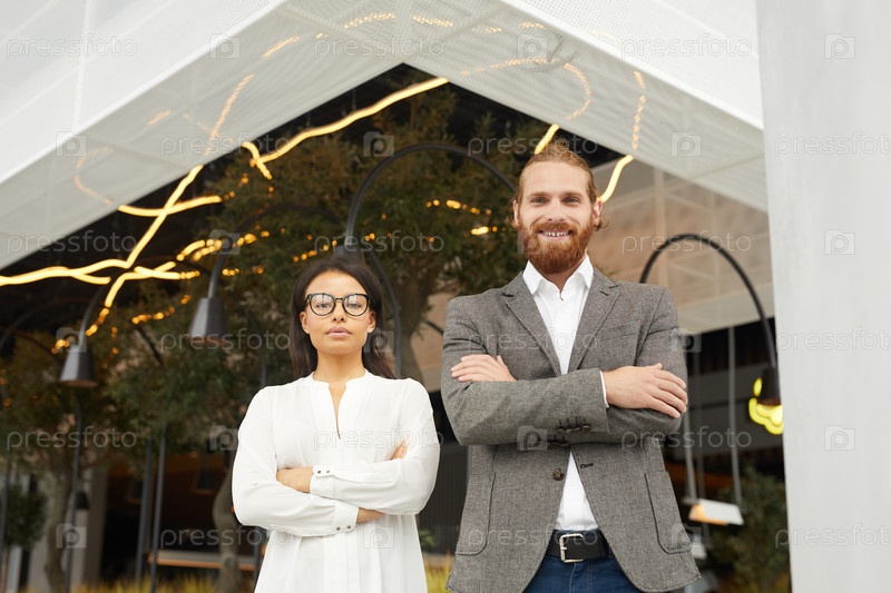 Успешная деловая пара на открытом воздухе