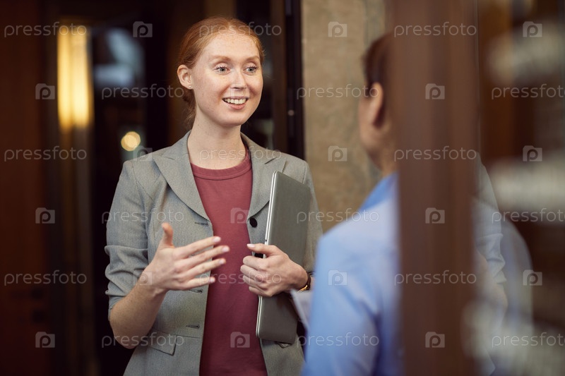 Деловая женщина обсуждает работу с коллегой
