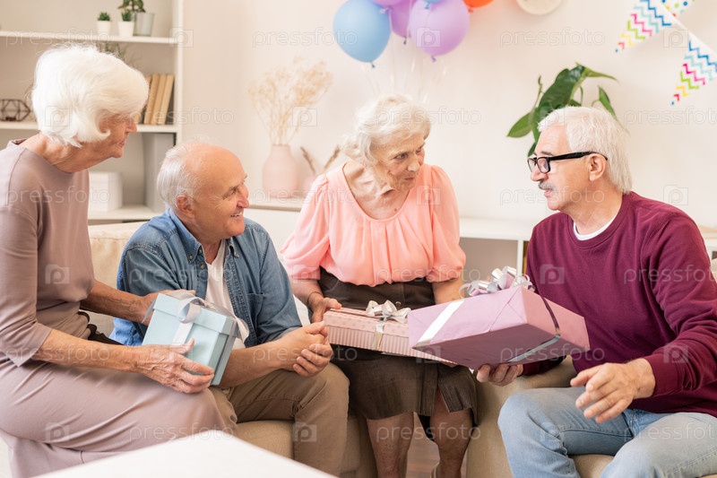 Четверо современных старшеклассников делают друг другу подарки и разговаривают