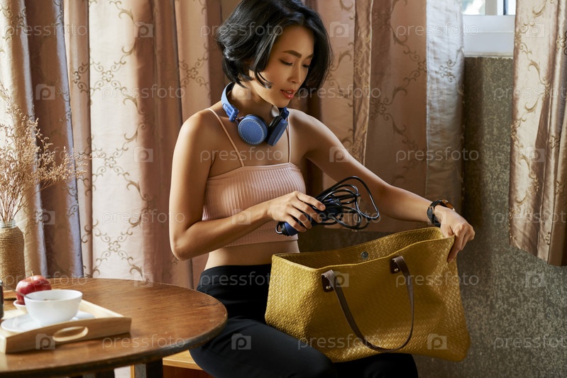 Молодая женщина упаковочная сумка