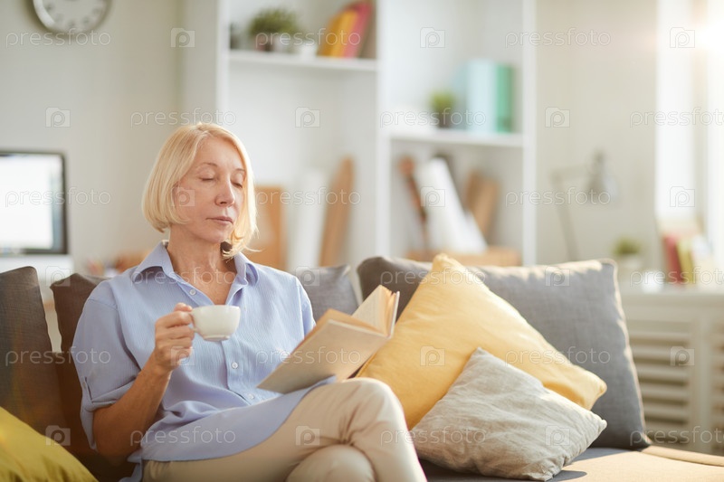 Зрелая женщина читает книгу дома